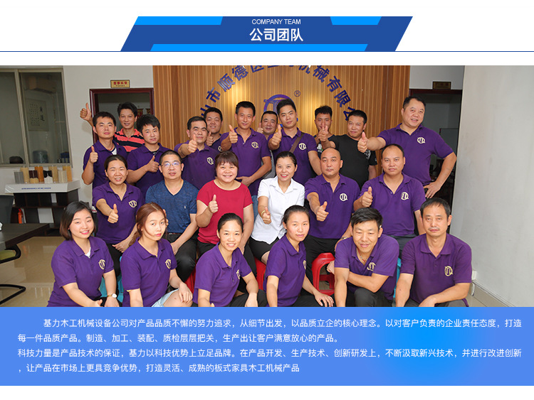 基力木工機械設備公司位于木工機械重鎮——佛山市順德區倫教鎮內。我廠擁有眾多專業技術人員和高素質的生產工人,堅持不斷研究、開發、創新,多方吸取廣大用戶的寶貴意見,努力從實用靈活、適用面廣、維修方便加以改進設計成高品質的木工機械產品。 經過我們不斷努力,本廠的產品以質量保證,設計創新,價格合理而贏得了國內外經銷商及用戶的認同...